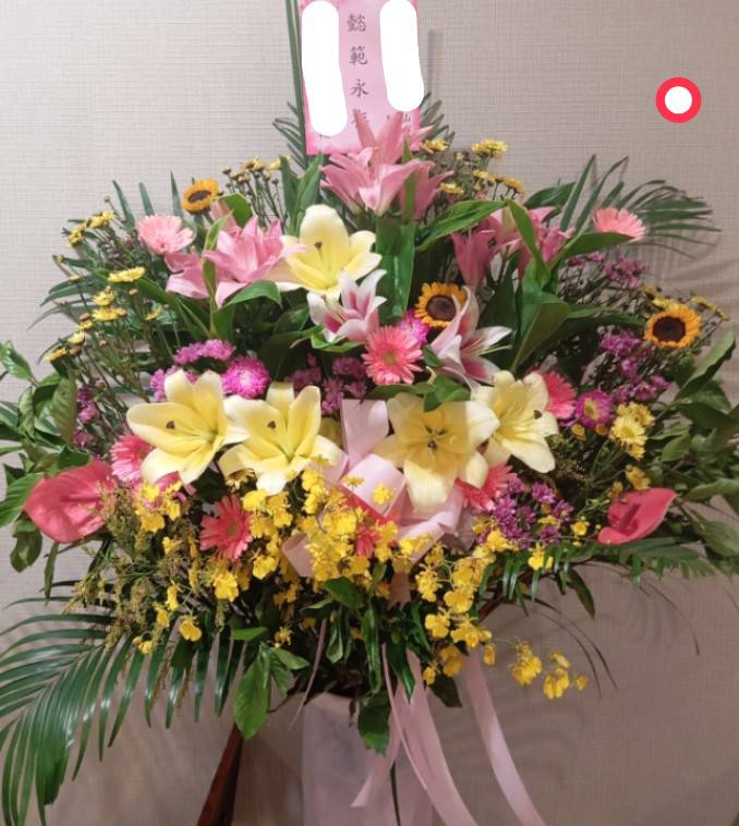 花材: 百合.太陽花,向日葵.白竹.菊花.火鶴.文心蘭.葉材